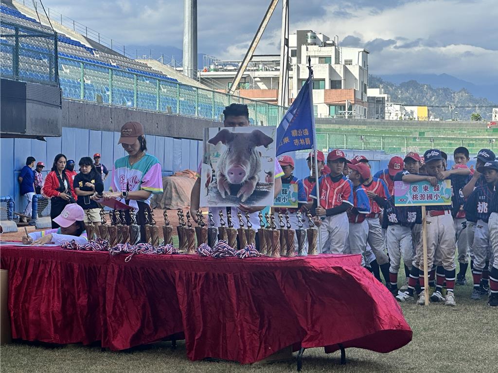 伍,展現十足運動精神,因此大會加碼共送出9頭豬,讓球隊及家長共享勝利喜悅。