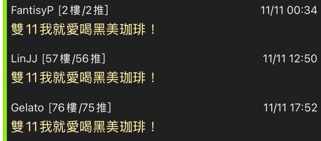 贈豆方式:推文「雙11我就愛喝黑美珈琲!」(建議直接複製整句)