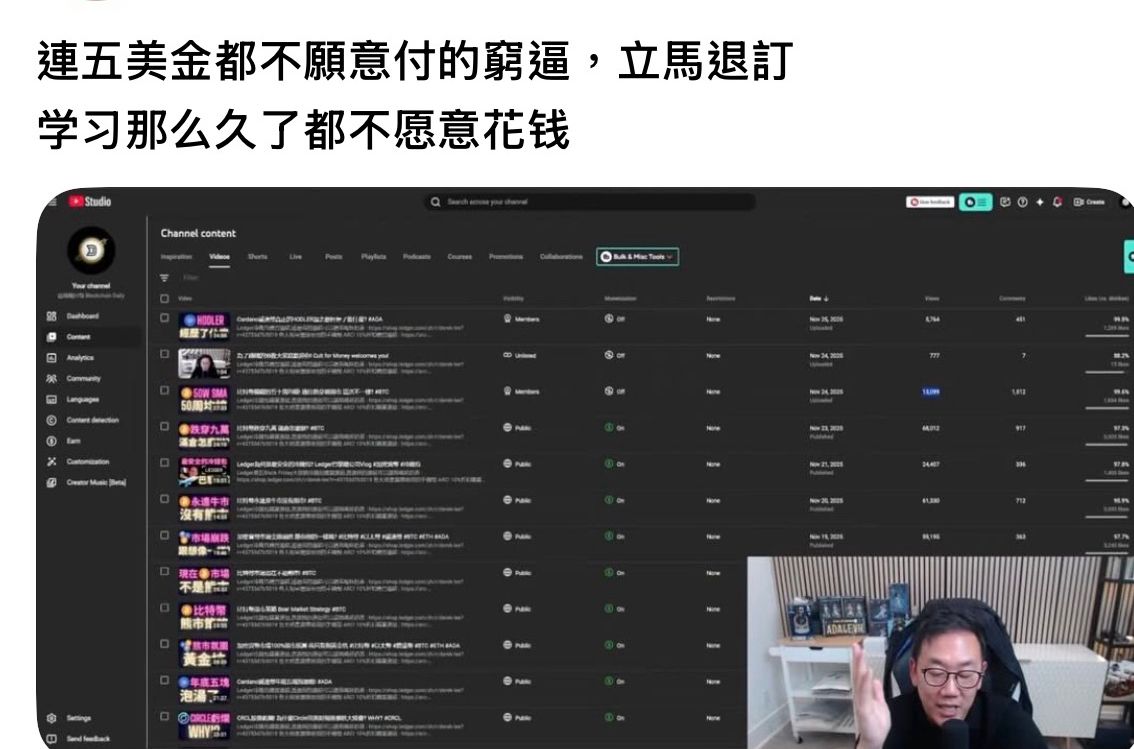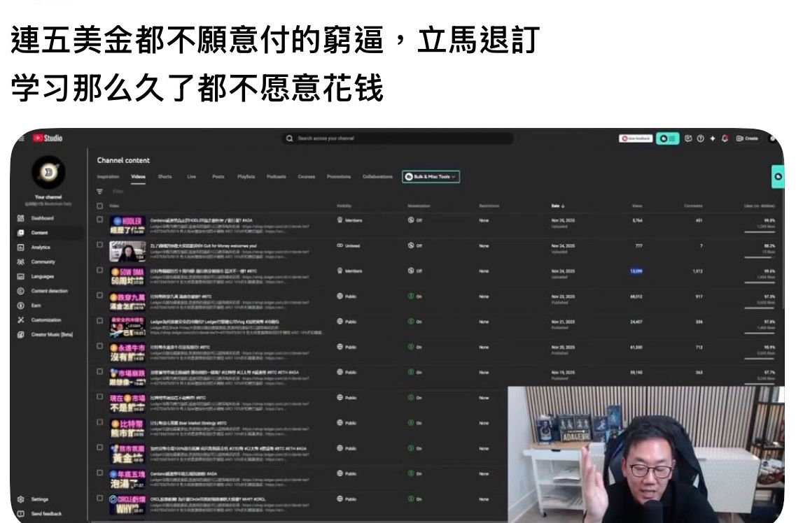 禿頭以前說他不會開訂閱割觀眾,現在開取暖訂閱群。