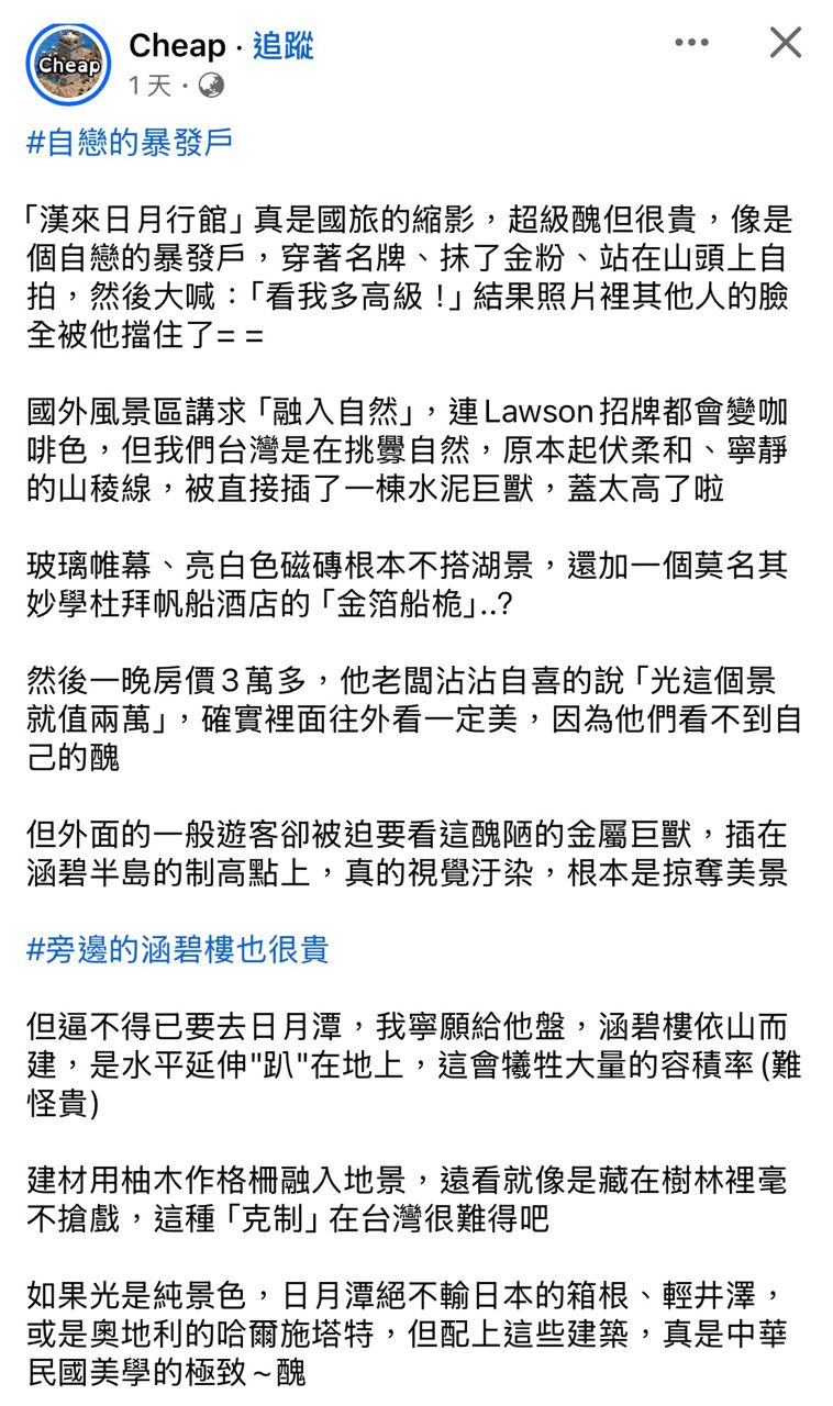 Cheap 怒噴日月行館是沒藝術文化沒水準的建築,佔據最高的山頭,強迫大家欣賞美景都
