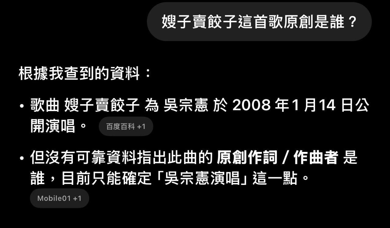 剛剛問了GPT「嫂子賣餃子實在好吃勒」是否有作詞作曲權!GPT回答說只有「吳宗憲演唱」