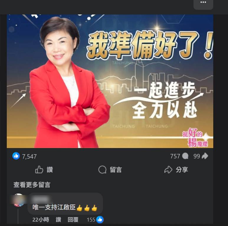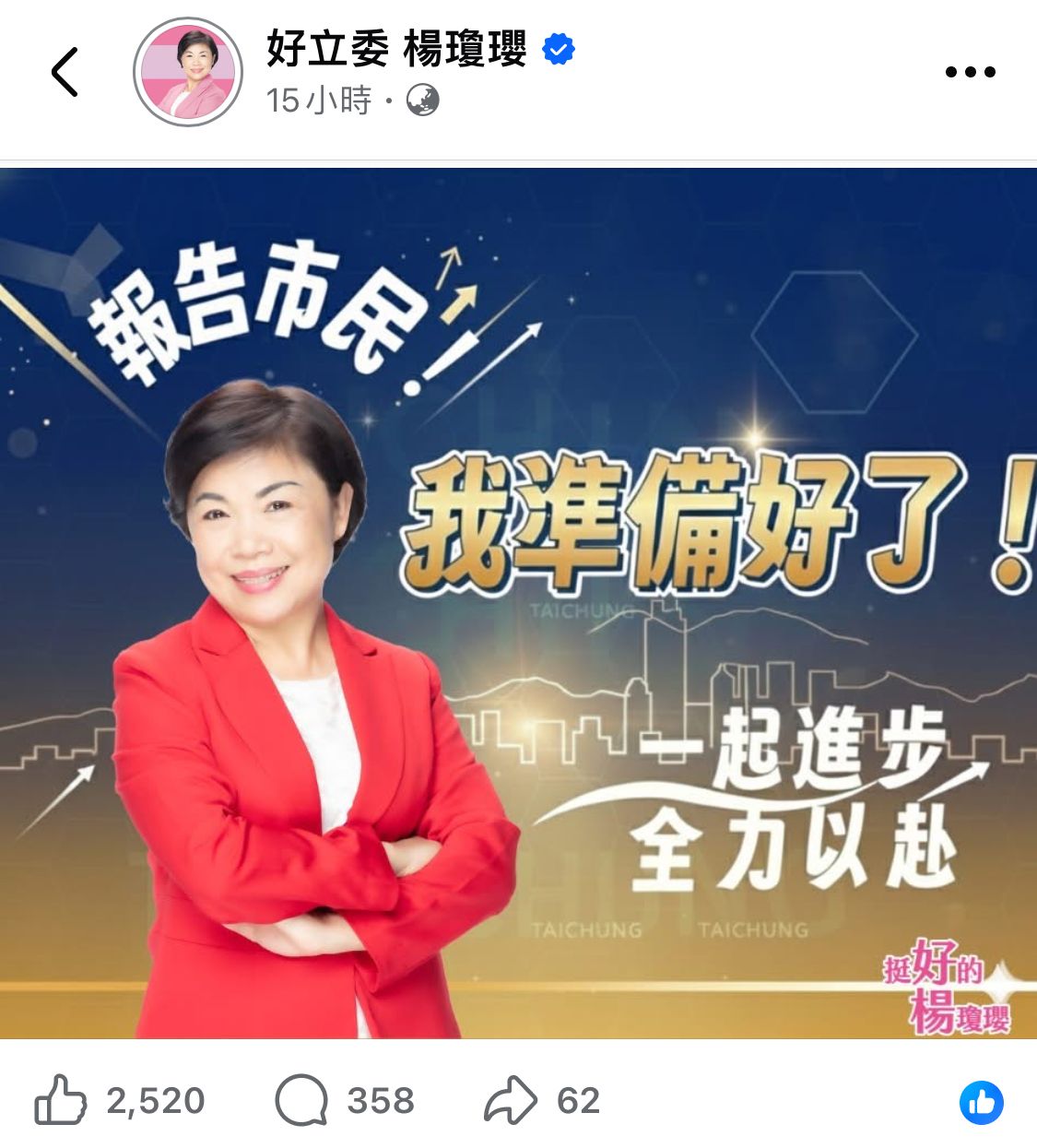 Re: [討論] 楊瓊瓔宣布參選台中市長後續聲浪