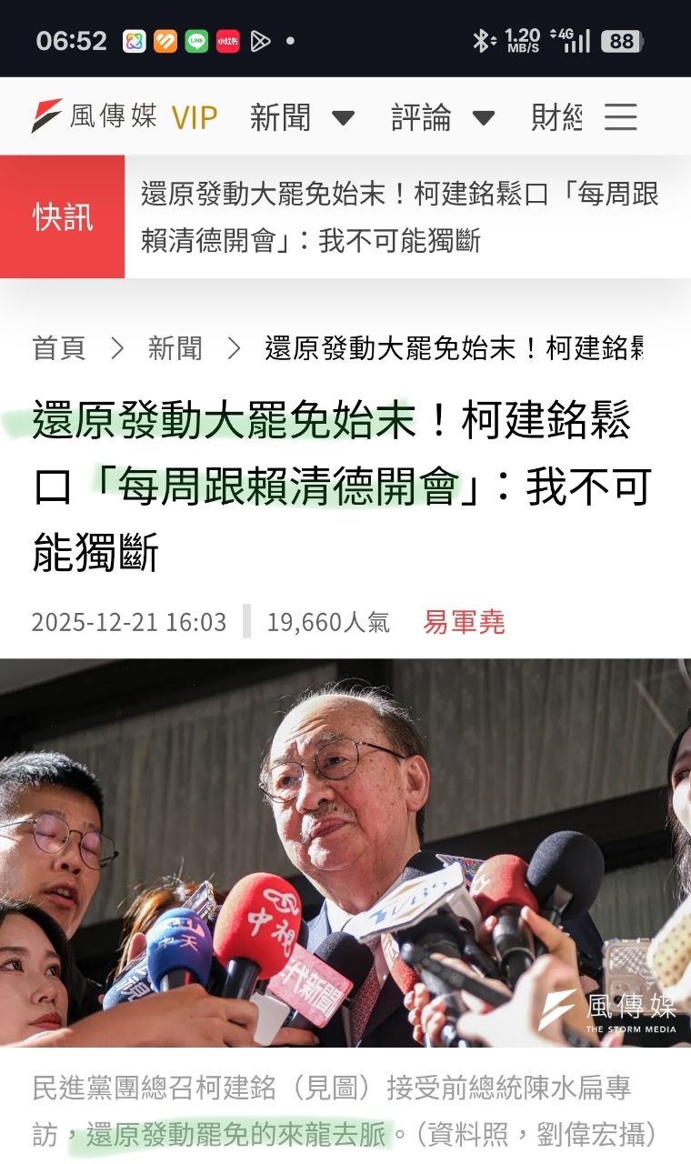 瘋狂打臉賴清德,發動大罷免就是經過賴清德同意,每週都和總統開會報告進度,而且民