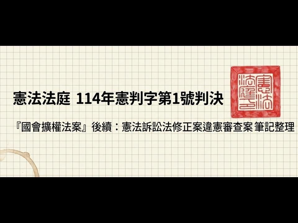 憲法法庭宣告114年1月修正公佈的《憲法訴訟法》部分條文違憲。這些條文原本旨在限制大