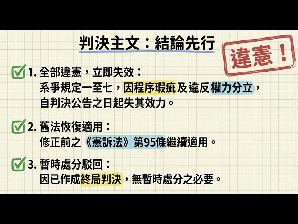 ### 影片摘要整理:5大法官判《憲訴法》違憲相關爭議