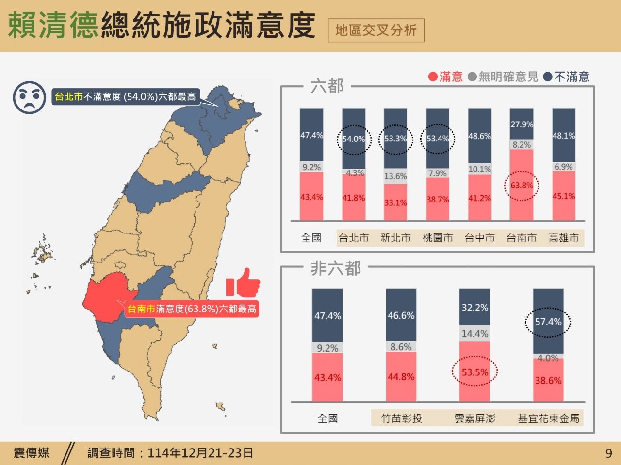 賴清德滿意度過半地區為屏嘉澎台南