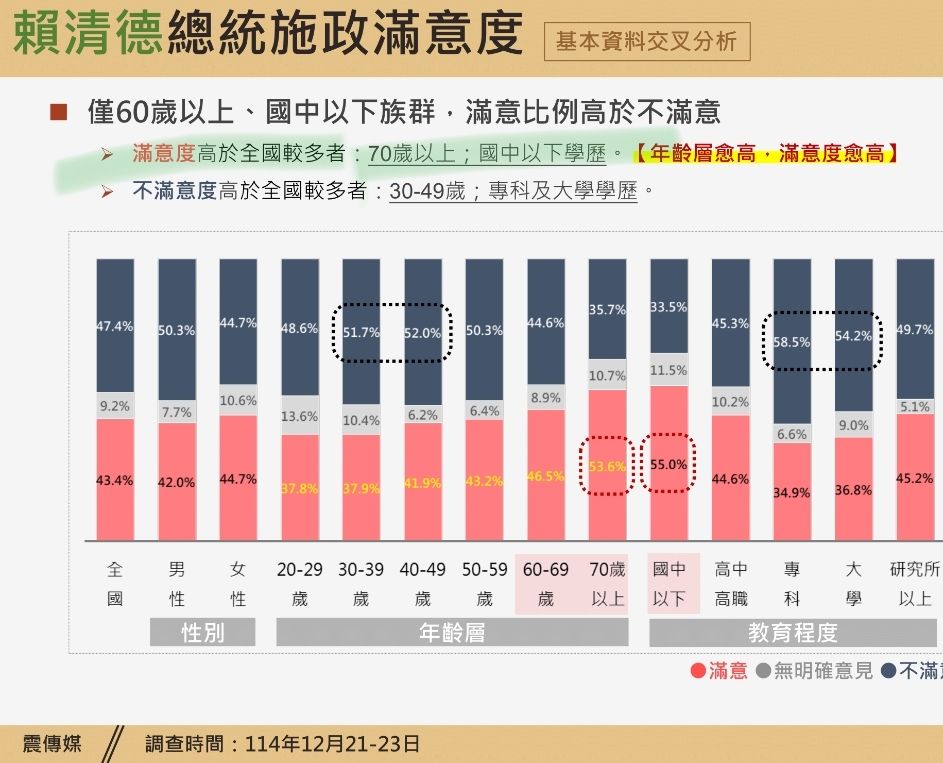 賴清德政府滿意度最高的族群為: