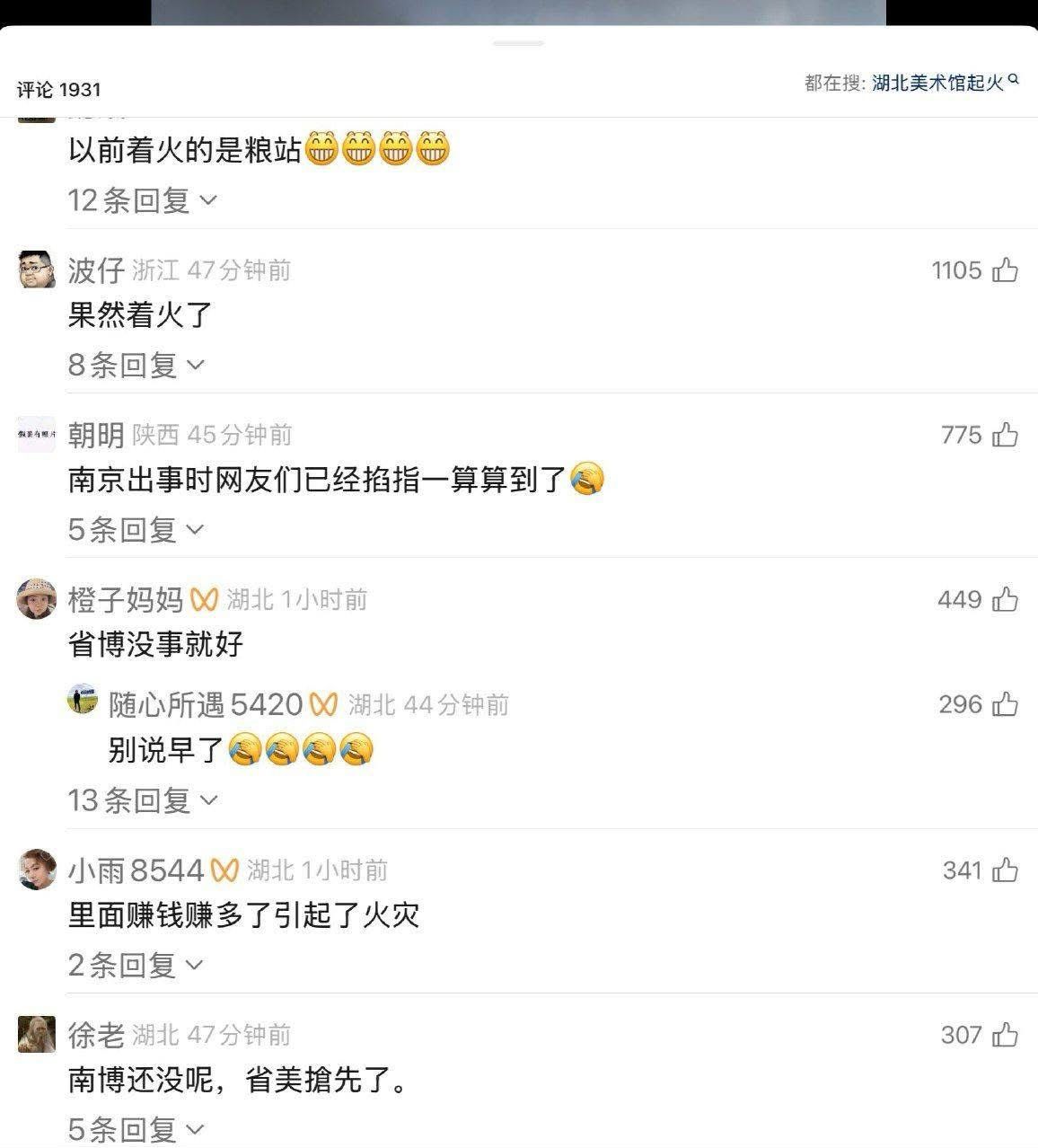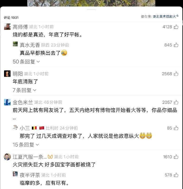 結果剛才傳出最新消息,停業中的其中一間,位於武漢的湖北美術館發生火災。