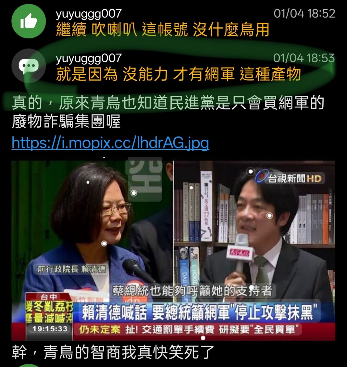 真的,原來青鳥也知道民進黨是只會買網軍的廢物詐騙集團喔