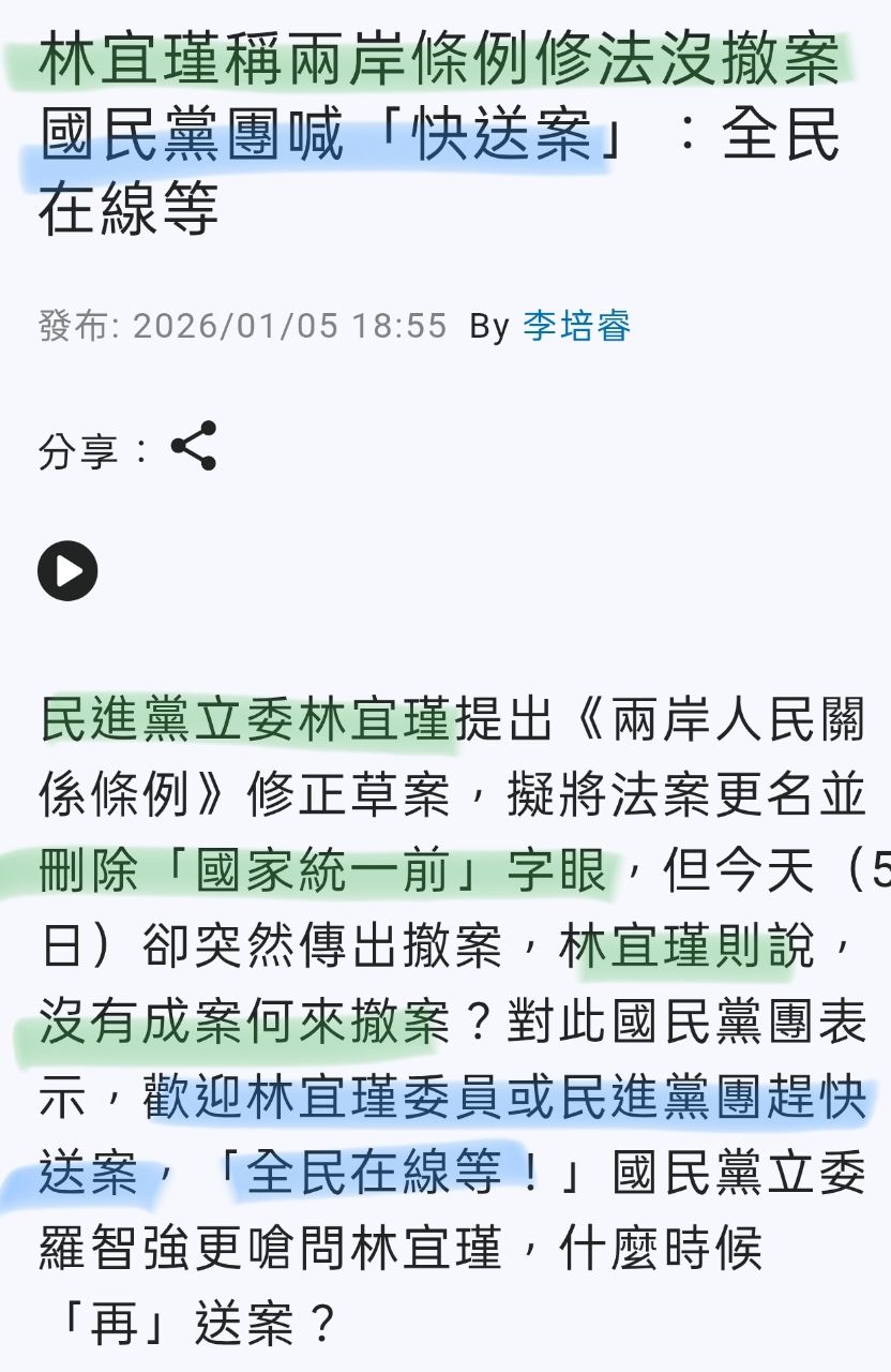 前幾天突然搞個修法要搞台獨 結果兩天就自己摸摸鼻子撤案