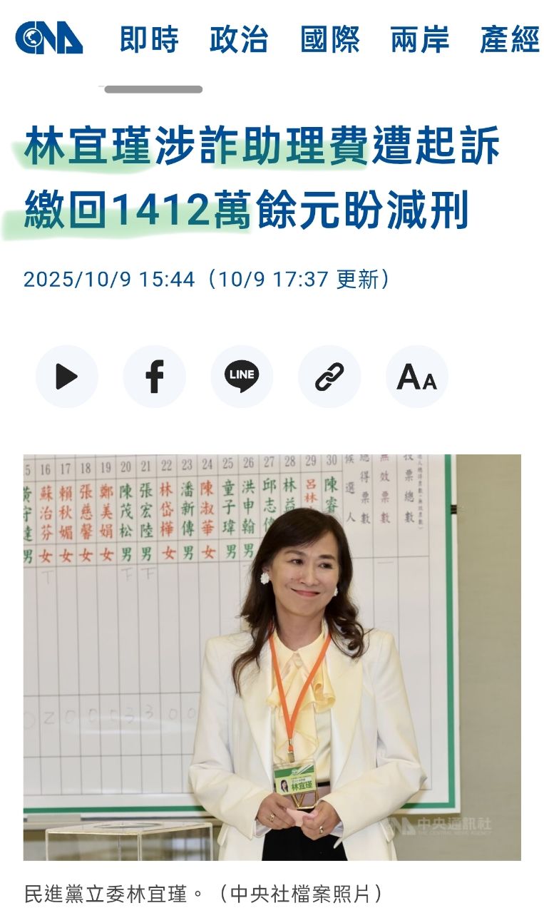 結果林宜瑾今天貪汙還不搞好台獨 那青鳥到底選她幹嘛= =?