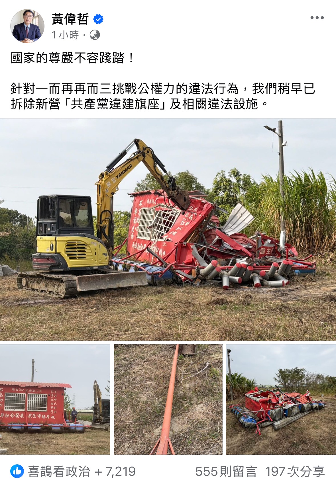 標題: [討論] 藍白畜悲報!偉哲把台南共產違建旗座拆了