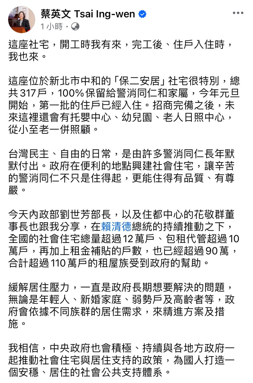 我們的總統學姐臉書發文大讚總統學弟賴清德
