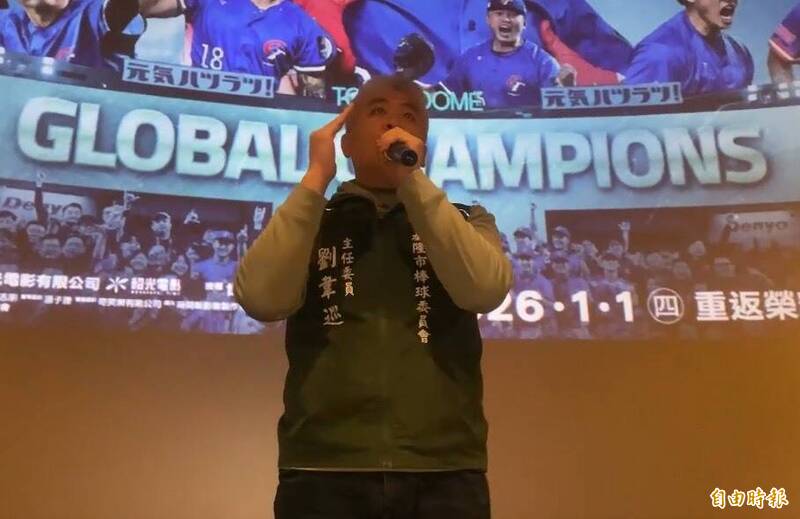 基隆市棒球委員會主任委員劉韋巡,包下基隆秀泰影城9樓播放《冠軍之路》紀錄片。(