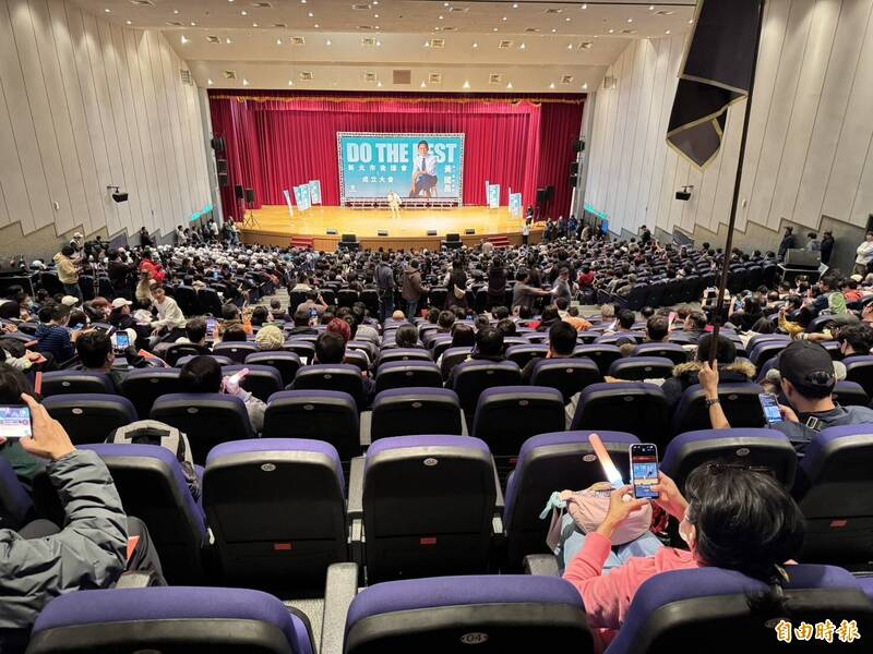 現場觀察,支持者陸續進場,但仍可見部分座位空置。(記者羅國嘉攝)