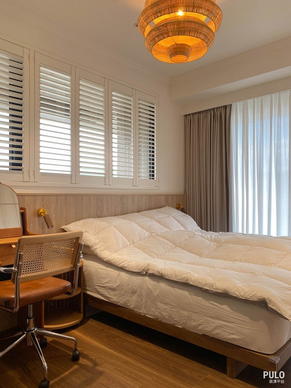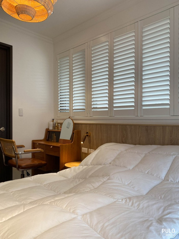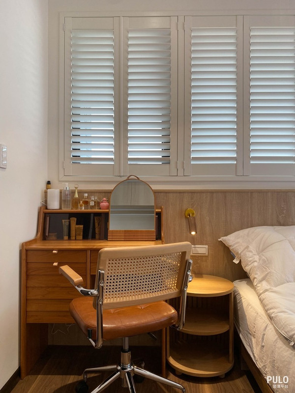 考量到白天需要自然光、晚上又希望有遮蔽效果,這裡選用了百葉窗作為窗飾。
