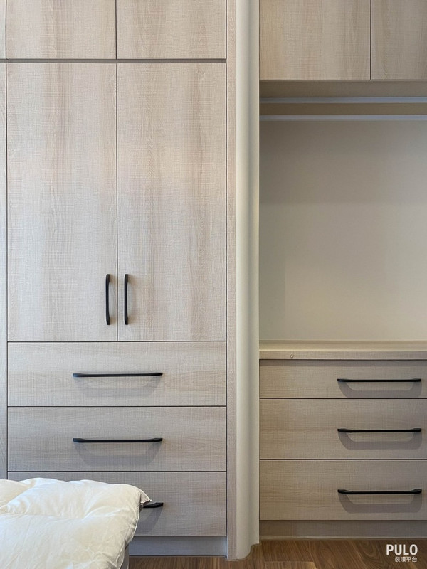 玄關和主臥也另外加了櫃體,把常用的東西收進去後,整個空間乾淨不少。