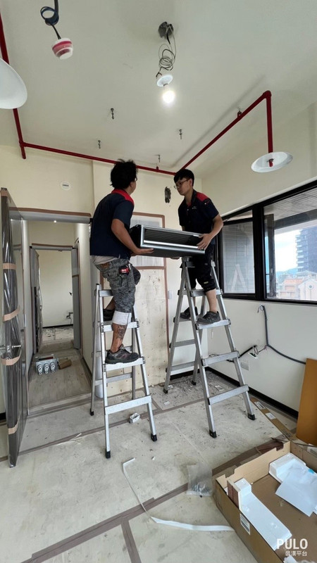 這次裝修特別著重在天花板的裝修處理,配合加裝吊隱式冷氣的需求,一併以木作包覆修