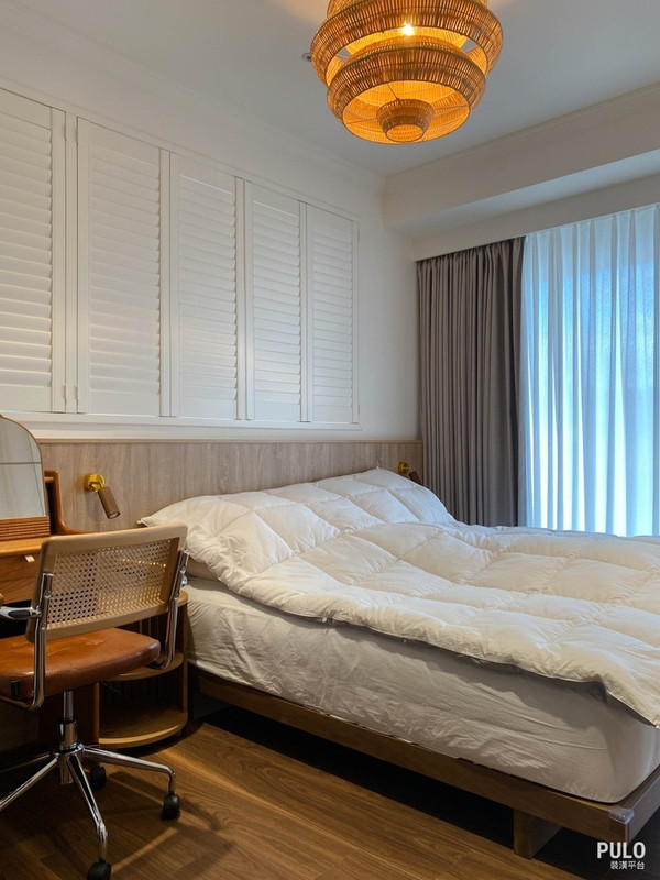 主臥有兩面採光,床頭後方也保留了一整片窗戶。