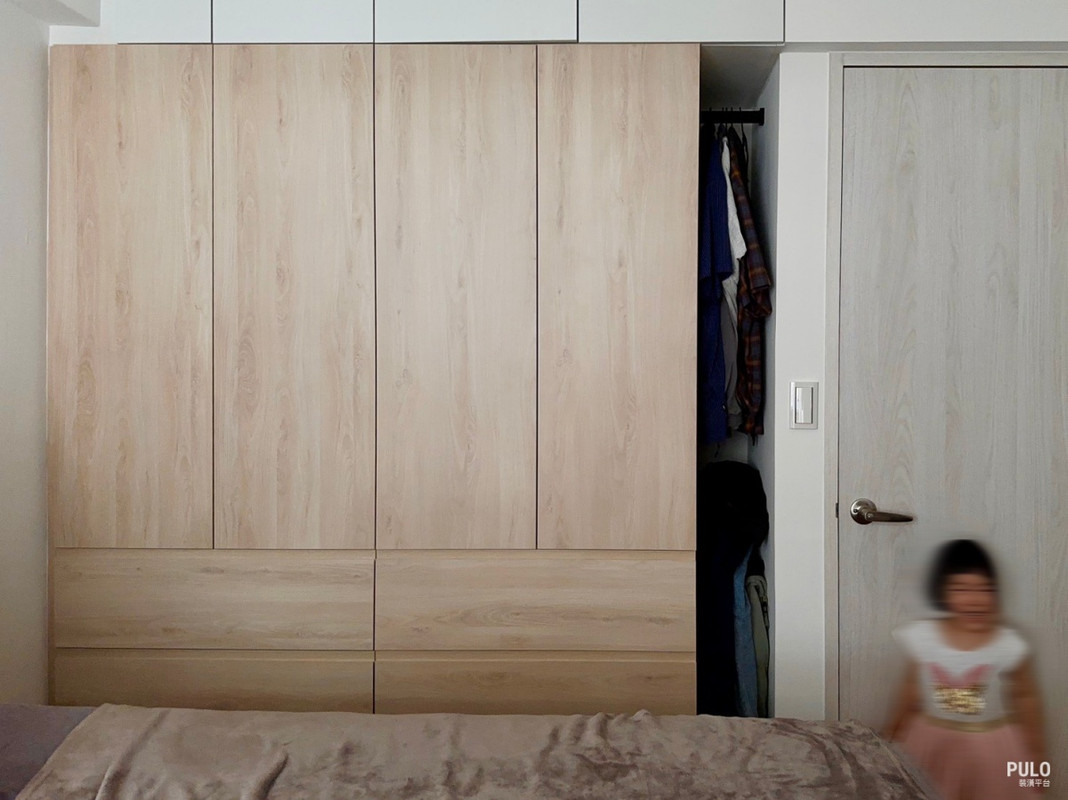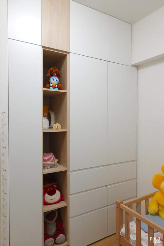 兒童房考量到孩子未來衣物會持續增加,衣櫃採用做到頂的滿版設計,預留了足夠的成長