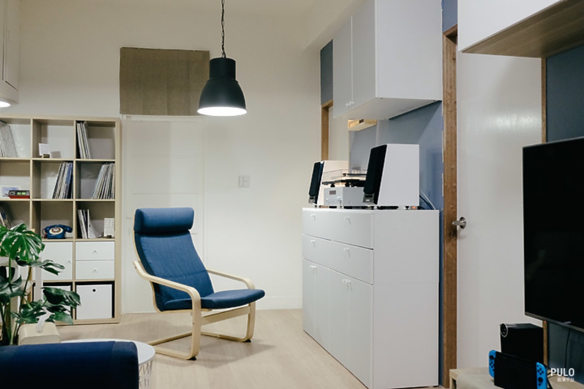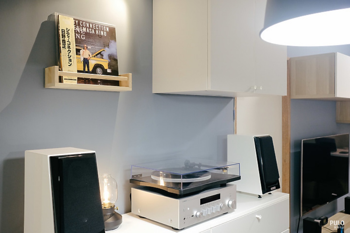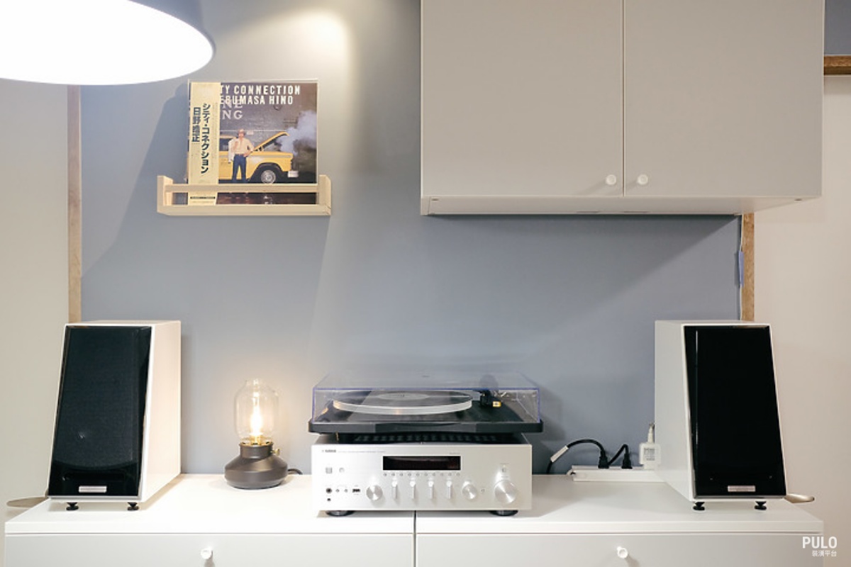 客廳也特別規劃了一區,能夠隨時依照自己的心情,給自己一張唱片的時間,緩緩放下針