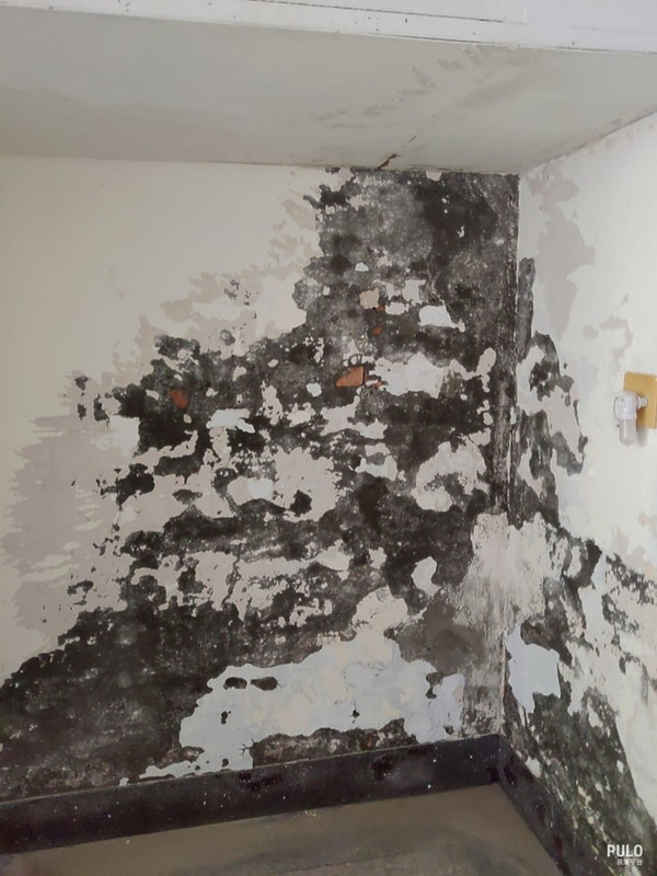 由於是一樓的關係,水氣也比較潮濕,原本被雜物遮著的牆壁,刨除油漆後才發現壁癌的
