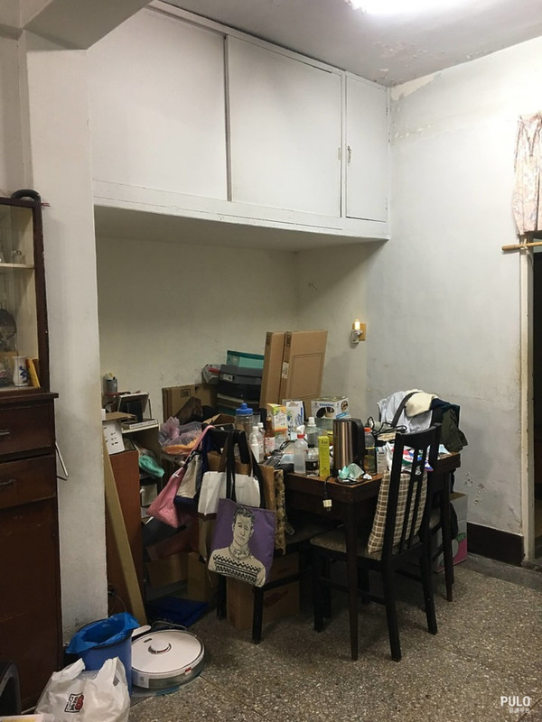 屋齡已高,空間有大量待整理的物品,堆積如山的物品不知從何整起,壁癌與油漆脫落的