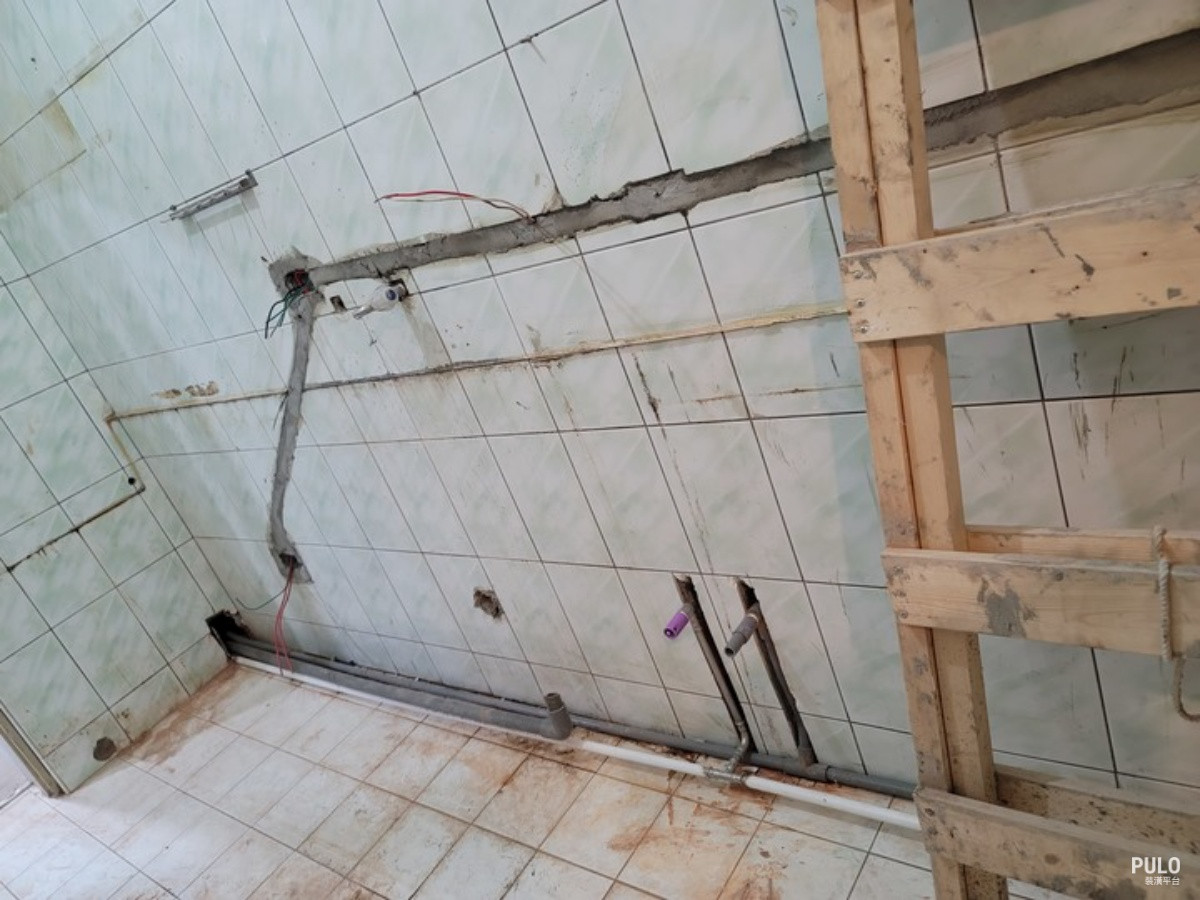 廚房磁磚沒有要全部打掉,因為保持得還不錯,只是要打牆埋管,所以有很醜的管路,預
