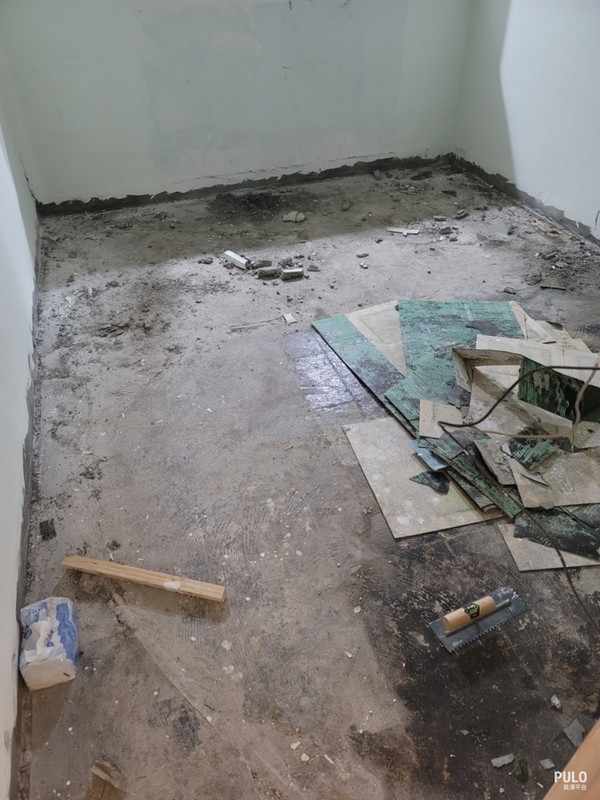 泥整平,有請泥作師傅來,本來就想說一勞永逸,但後來找到一間我家倉庫附近的木地板