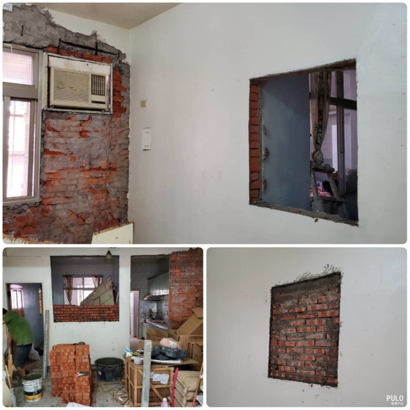客廳及臥室有兩處木作,但早期的木作是直接崁在牆內的,打掉木作就變成一個空洞。