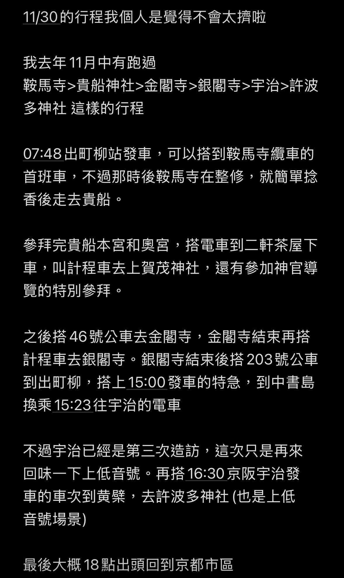 這是小弟第一次出國,很喜歡京都所以選了京都順便來賞楓,想來問問看行程有沒有可以改