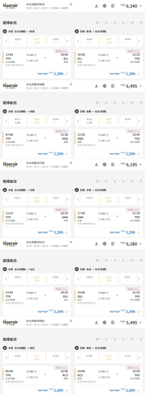 去程要看時間,時間比較好就不容易促銷,像札幌回程