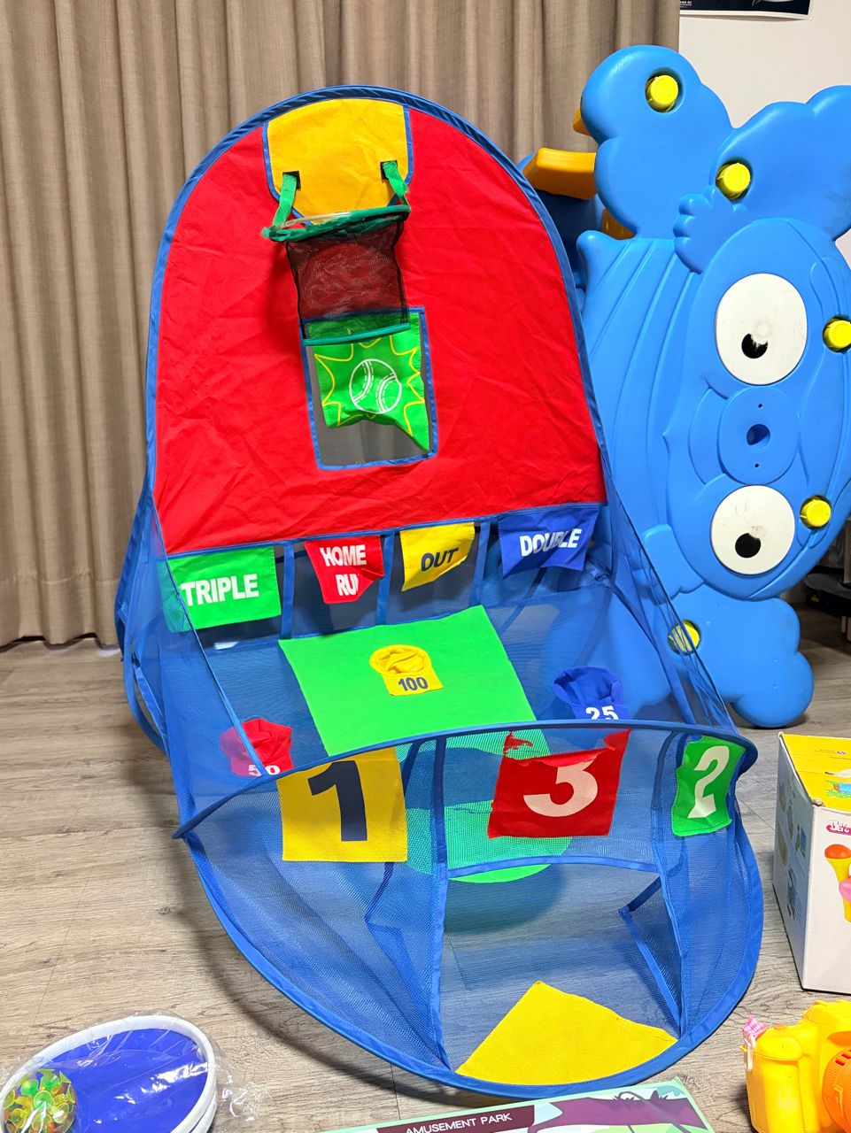 折疊式投球架不織布有破損加上我不知道怎麼把它固定 可折疊收納 當贈送