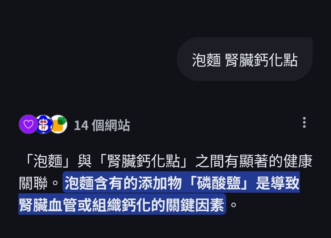 你吃外食也是吃了一堆磷酸鹽,跟泡麵沒兩