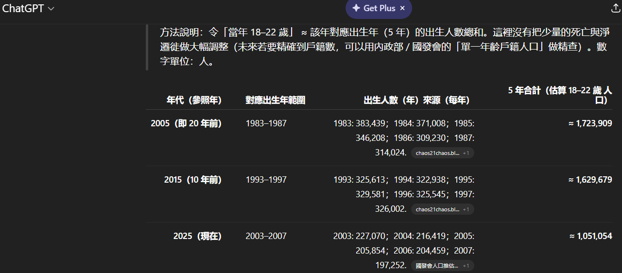 之前為新兵源好奇過 叫過ai整理台灣到底有多少年輕人