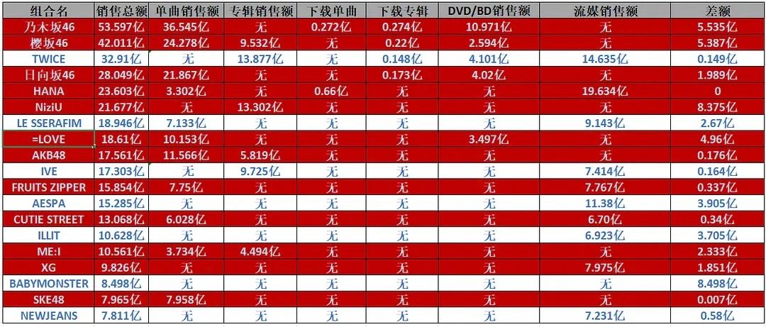 對岸有大神依O榜的銷售額,估算了各團的實體跟串流的銷售額,覺得有趣就轉發過來:
