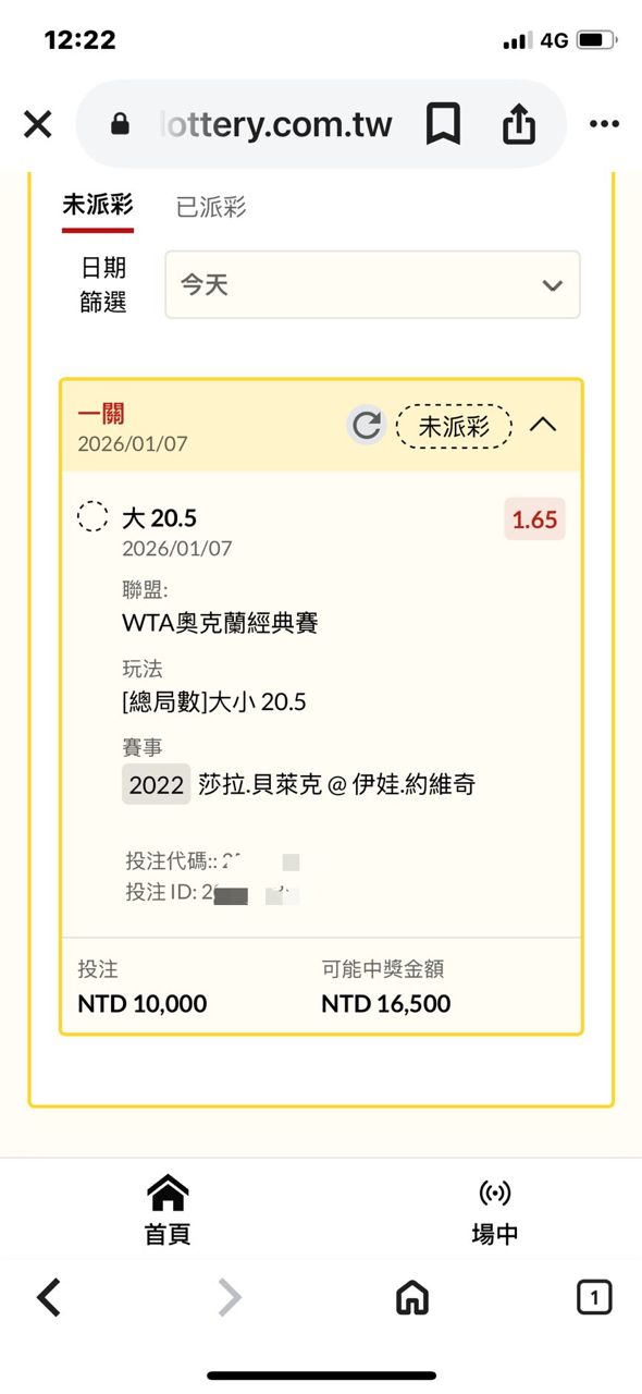 貝萊克@伊娃.約維奇 全場大 (20.5) 賠率1.65