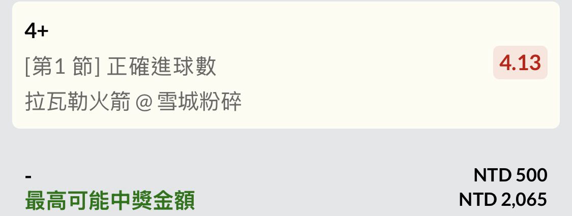 早洩一球後買。賽前7.7倍