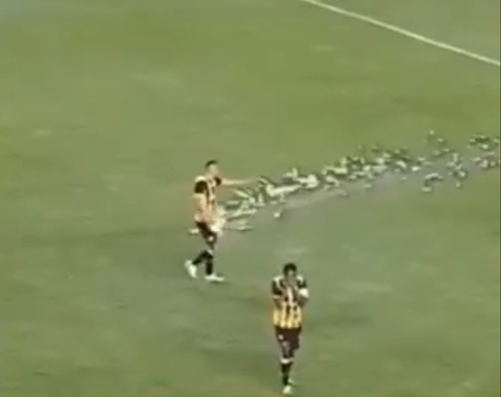 玻利維亞甲級聯賽最強者隊球員戈多伊,遭粉絲射向場內的煙火擊中下體,當場痛得倒地