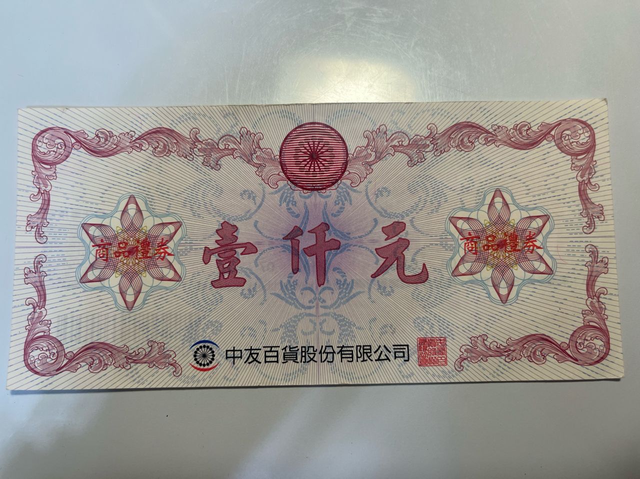 [售]中友百貨壹仟元商品禮券,$950