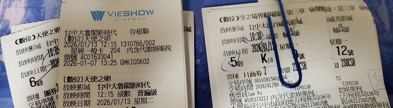 6.票面1/14(三) 晚上5點35分 ATMOS 2D (大魯閣威秀)