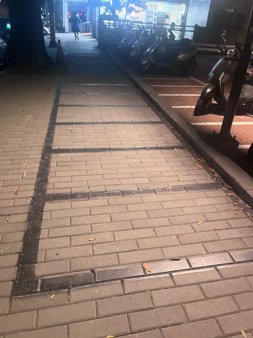 南門路商圈、教會門口也都人行道畫框框停機車,