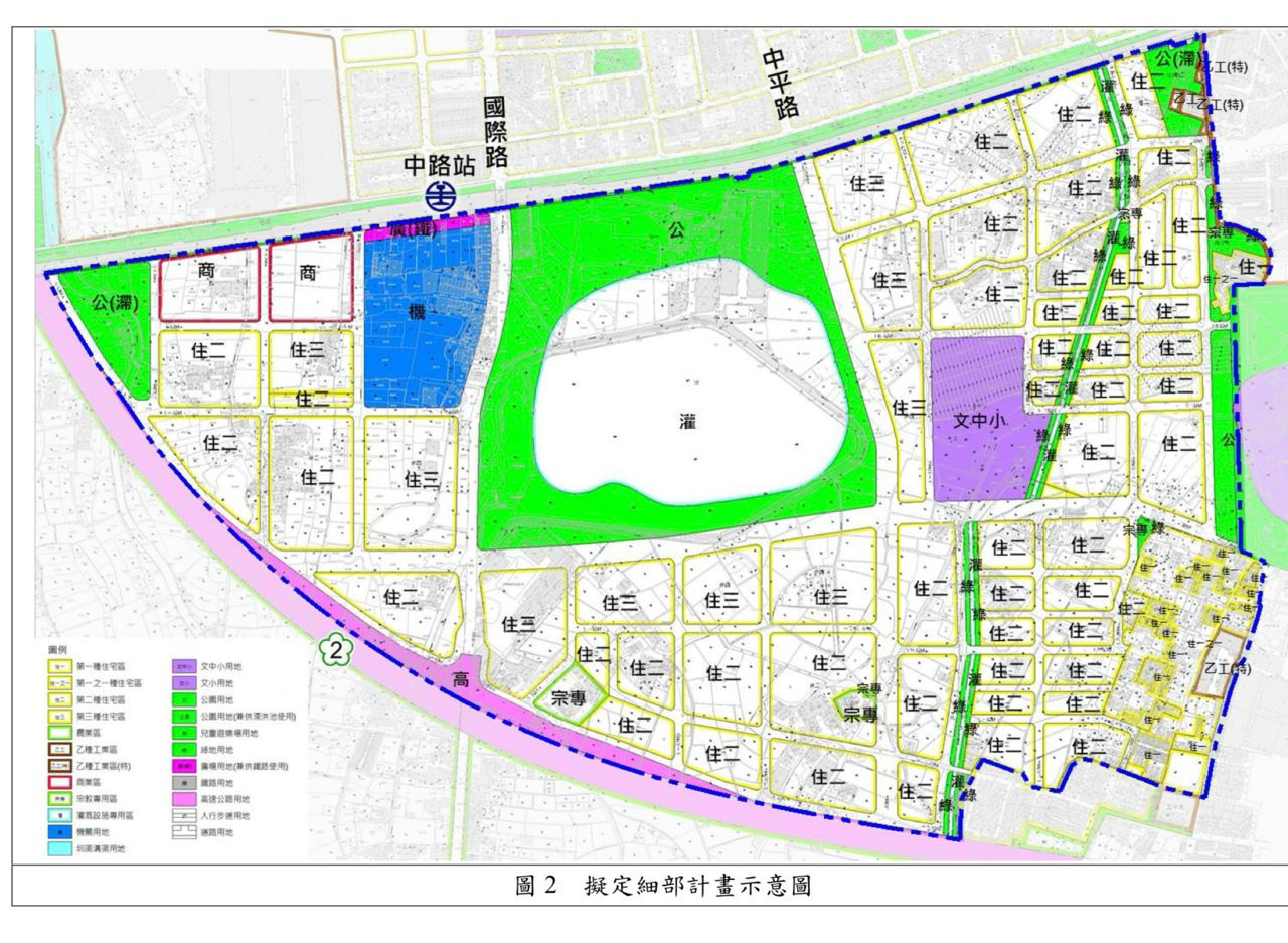 都發局長江南志表示,中路車站整體開發區總面積約125公頃,目前多為農地,市府正報
