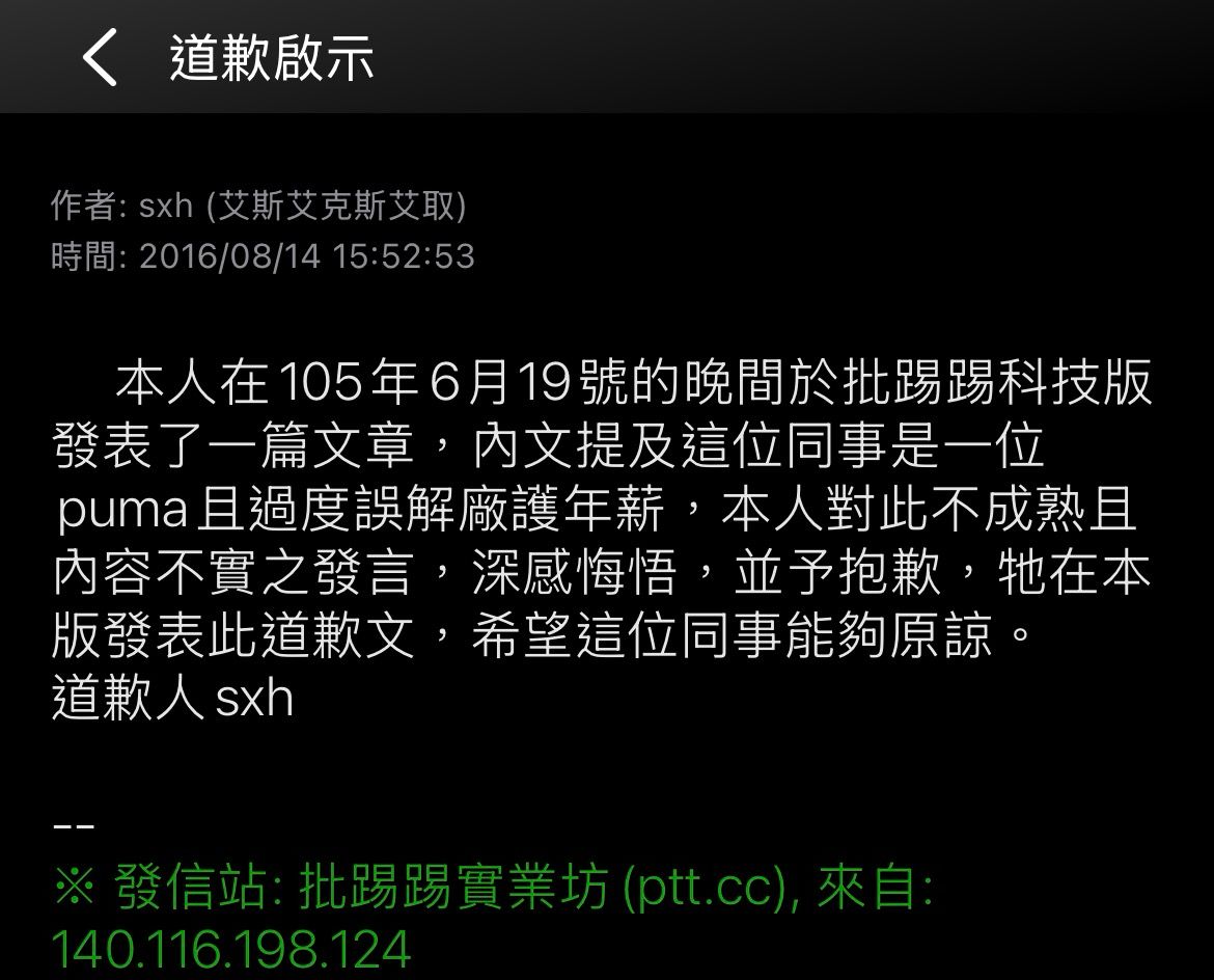 之原因所在。本人對於台達電與許姓人資因系爭貼文及推文而受到騷擾與批評之處,本人