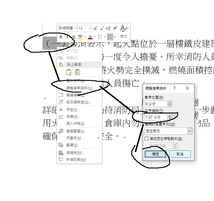 (一)後面的空白弄不見,就把(一)反白,案右鍵