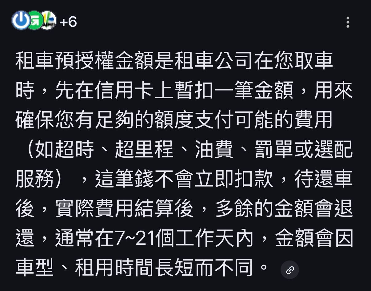 (米國的租車都是在租車當下就會刷金額,再加上一筆保證金(200-300美),所以他後來