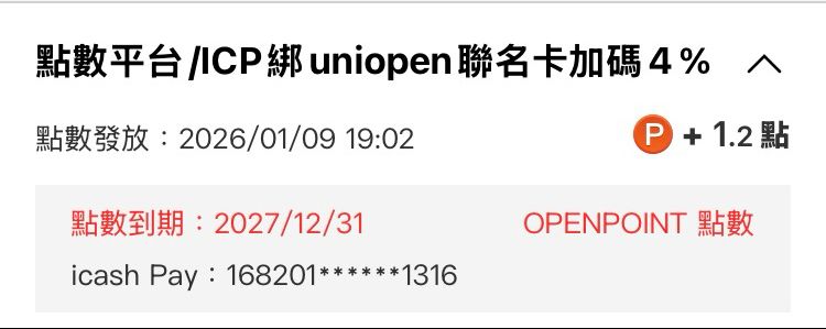 [情報] uniopen 1月份icashpay 4% 是否額滿回報