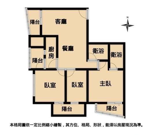格局 : 3 房 2 廳 2 衛 4 陽台