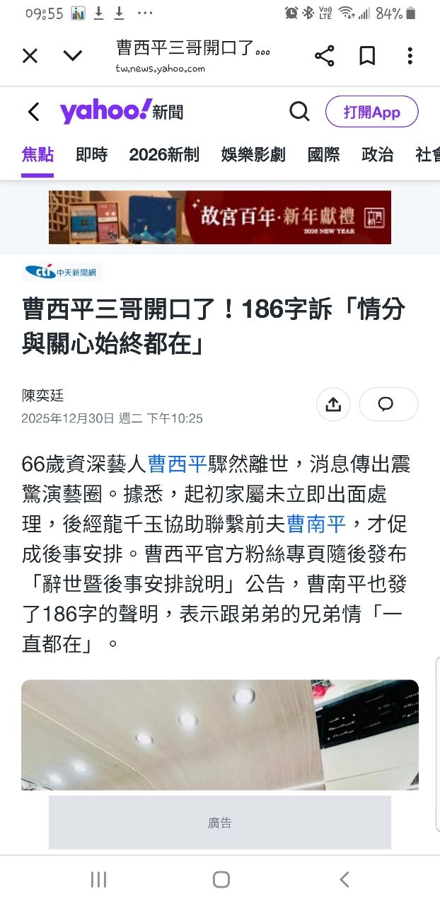 之前是羅碧玲,現在是曹西平,小時候的藝人一個一個走了,讓人不勝感慨!好消息是至