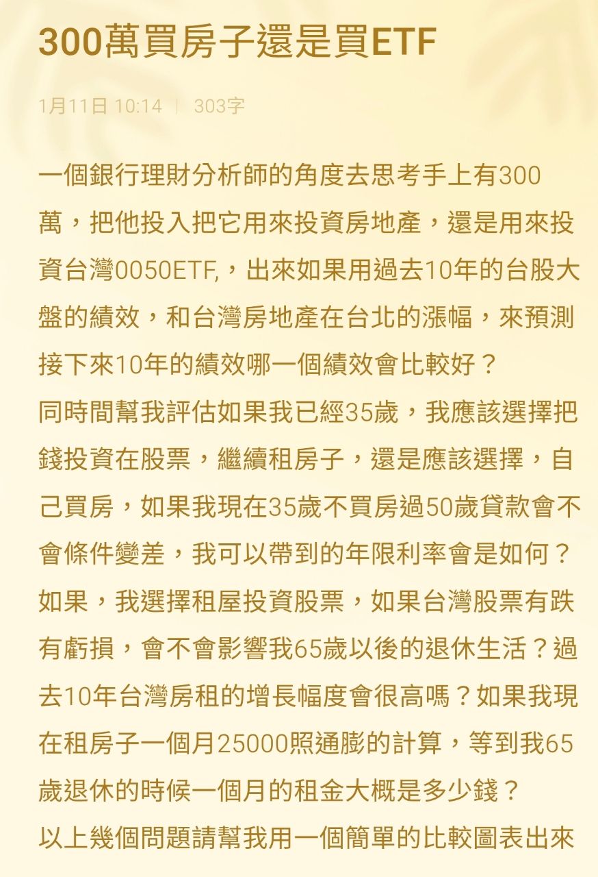 300萬要買房,還是買ETF?